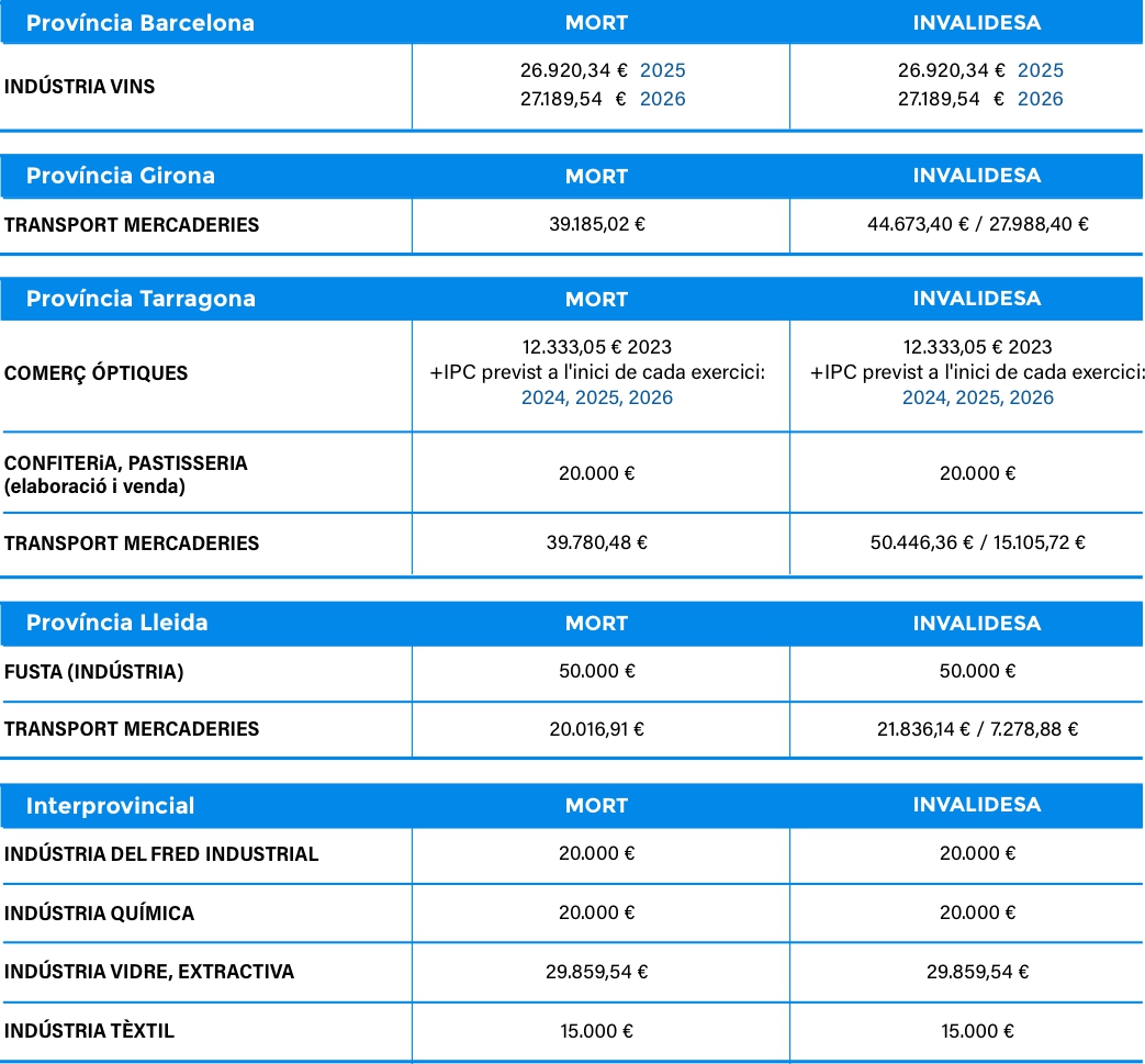 Actualització de les assegurances de vida o invalidesa dels principals convenis col·lectius