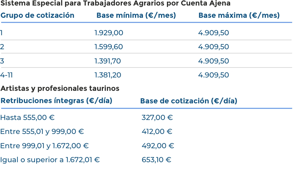 A partir del 1 de enero de 2025, los topes de cotización quedan fijados de la siguiente manera: